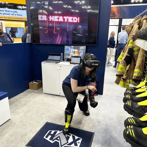 Hundreds of attendees lined up to get their hands on an exclusive HAIX backpack and immerse themselves in FLAIM’s interactive VR firefighter recruitment game, a feature within the FLAIM Trainer. Participants battled their way to the top of the scoreboard and one skilful contestant even knocked James Mullins, FLAIM CTO, out of first place!