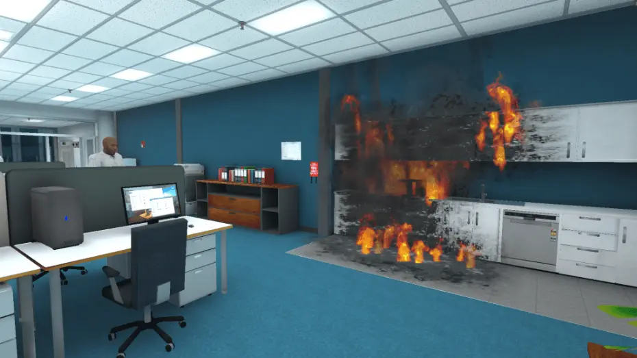 The highlight of this release is our new Workplace Fire Warden scenario, which puts trainees in the shoes of a fire warden and tests their response to a fire emergency. The scenario follows the regulations of fire warden procedures. It requires the trainees to follow a range of steps, such as activating the alarm, contacting the fire services, searching the entire floor, evacuating colleagues, and determining whether to fight the fire or evacuate. This is our first scenario to feature an evacuation zone, which, along with fire warden procedures, will form the cornerstone of future business and professional scenarios.
