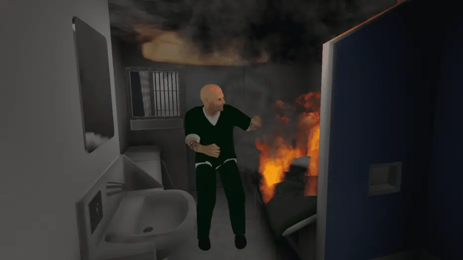 This update also introduces our two Corrections Facility scenarios that require precise and detailed procedures to evacuate inmates and fight fires in prisons safely. The first incident features a low-security cottage scenario involving an unattended frying pan on a gas burner. The trainee needs to evacuate the inmates in the cottage and correctly fight the fat fire.