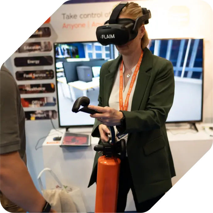 Transform your fire safety training into an engaging experience with FLAIM FEX, a fully immersive mixed reality (MR) fire extinguisher training solution providing a cost-effective, end-to-end solution for organisational safety and compliance. The system delivers engaging, on-demand fire safety training without the human and environmental risks of live fire training.