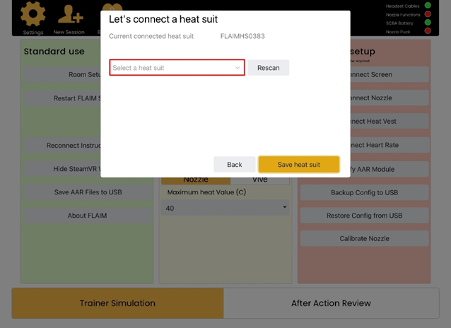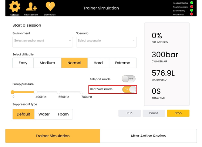 7. Once you've returned to the main facilitator screen and the TV/ Display view has rebooted, ensure that you have the Heat Vest mode enabled. .