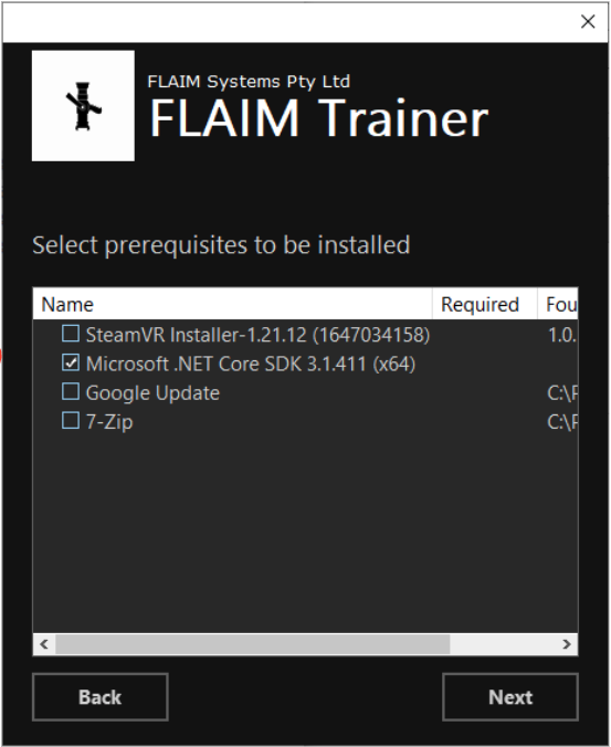- Following the installation of the background programs, the system will begin installation of the FLAIM Trainer software.