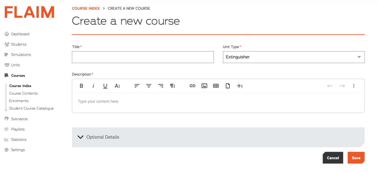- Unit Type: Select the product is this course designed for (Extinguisher/WSF or Trainer)