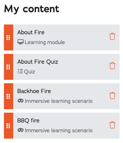 - To delete course content, click on the “Trash Can” icon on the right in the content box.