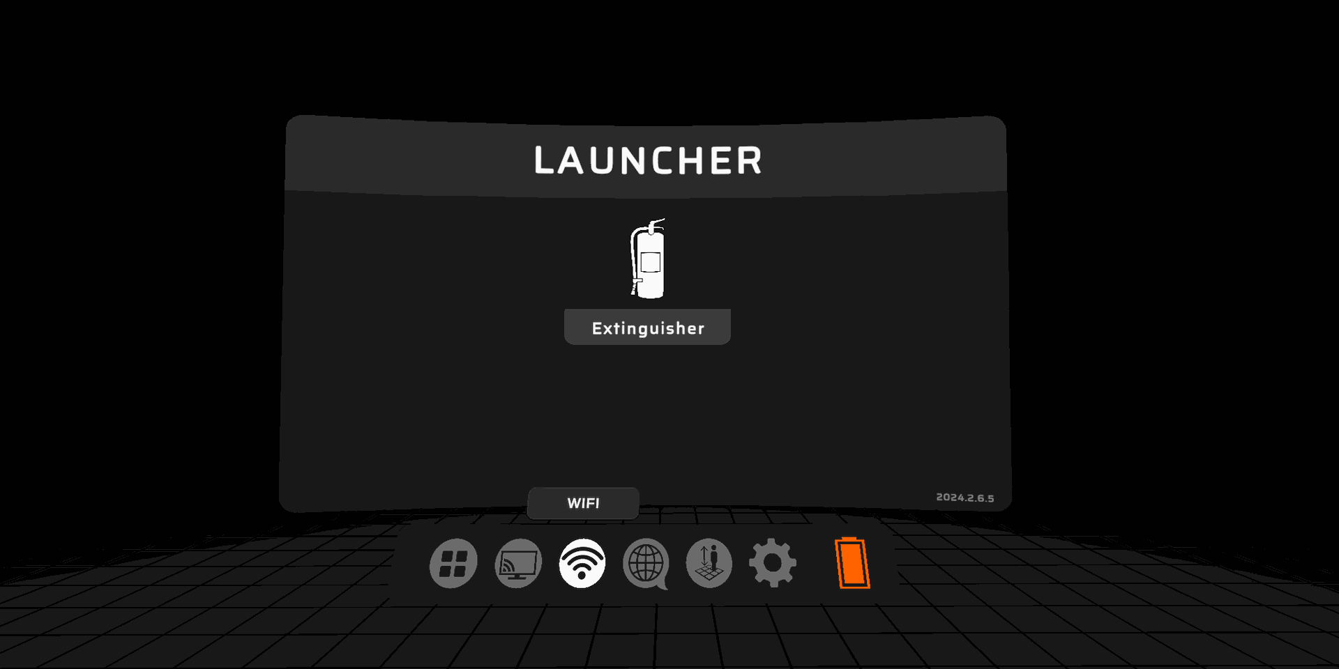 - In the headset, use the hose tracker to select the WiFi button (highlighted below) from the toolbar.