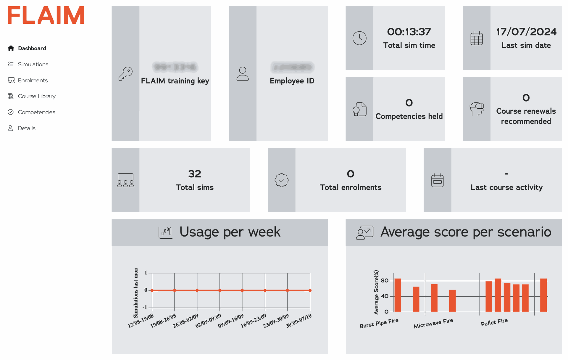 • The total time (in hours, minutes and seconds) recorded by the student in FLAIM simulation training.